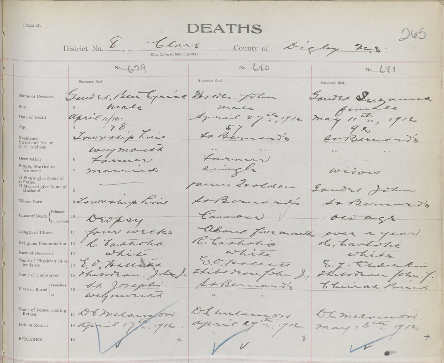 Female Death Registration: Year: 1916 book: 33 page: 265 number: 681