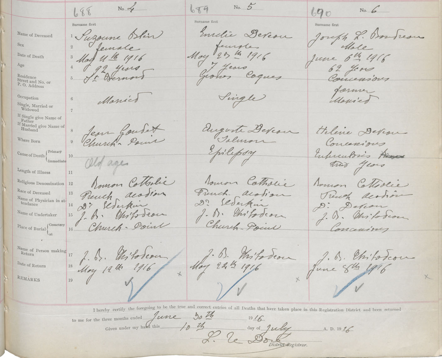 Male Death Registration: Year: 1916 book: 33 page: 267 number: 690