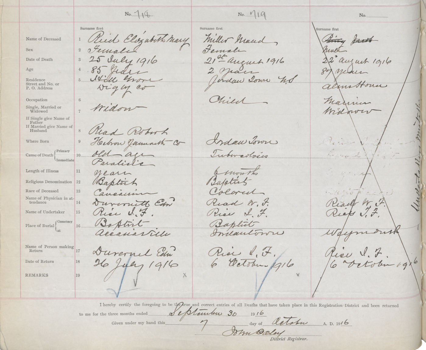 Female Death Registration: Year: 1916 book: 33 page: 276 number: 719