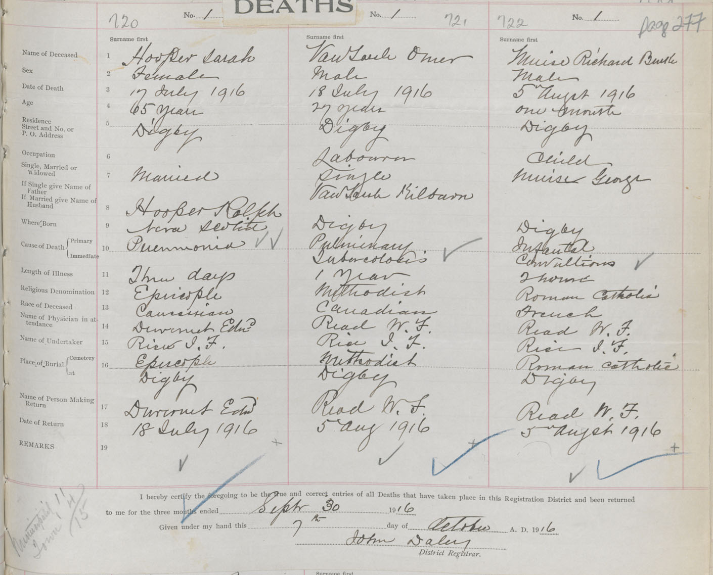 Male Death Registration: Year: 1916 book: 33 page: 277 number: 722