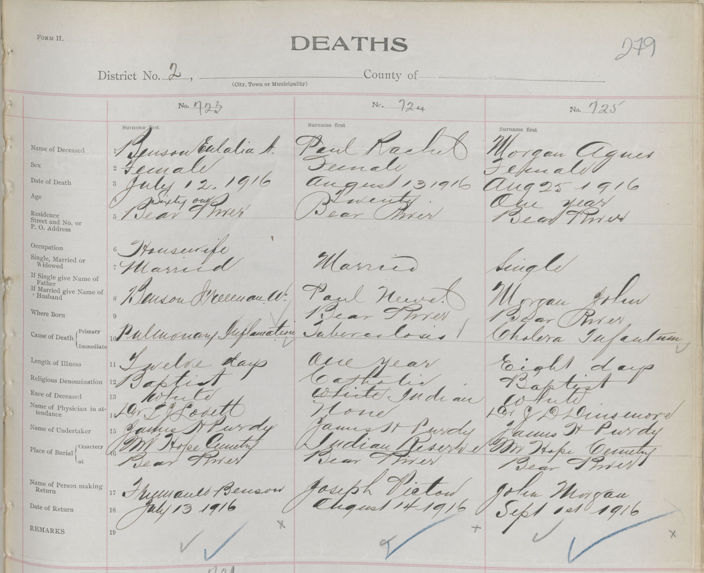 Female Death Registration: Year: 1916 book: 33 page: 279 number: 725