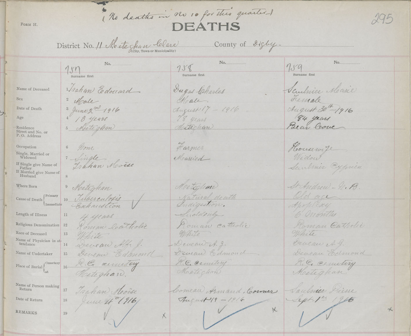 Female Death Registration: Year: 1916 book: 33 page: 295 number: 759