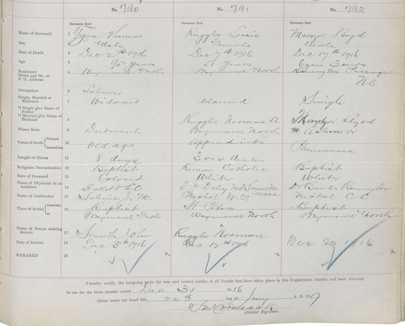 Male Death Registration: Year: 1916 book: 33 page: 307 number: 790