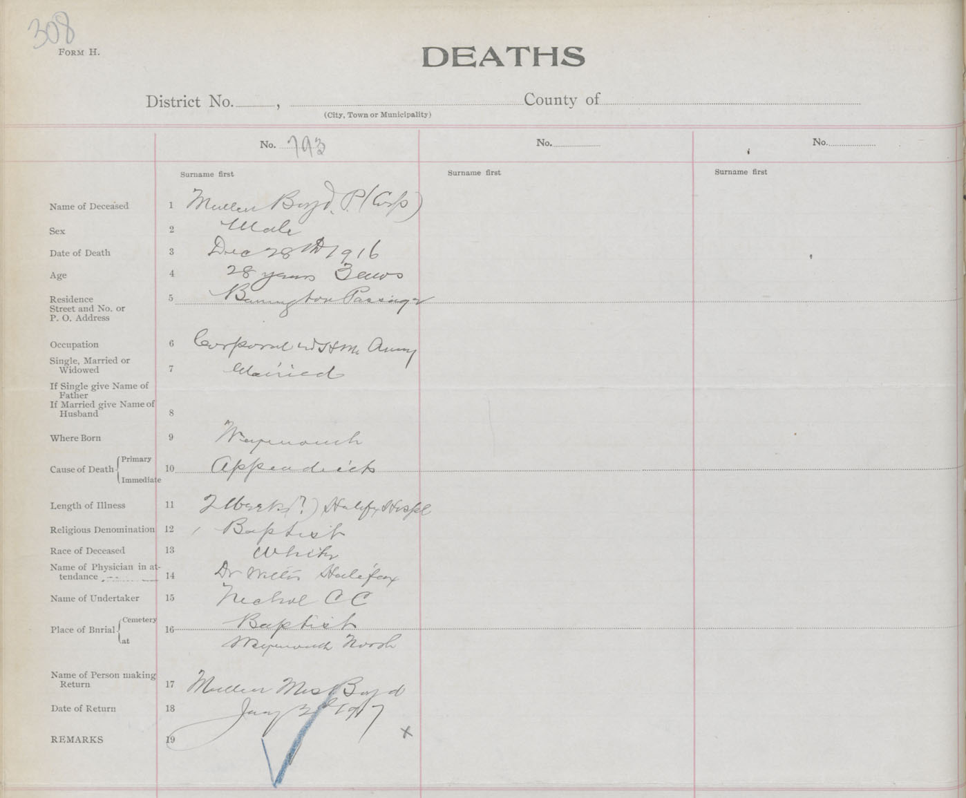 Male Death Registration: Year: 1916 book: 33 page: 308 number: 793