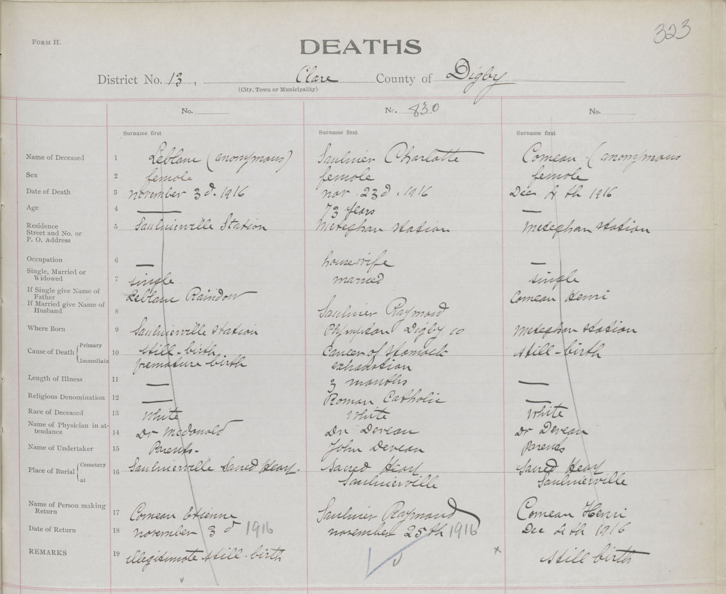 Female Death Registration: Year: 1916 book: 33 page: 323 number: 830