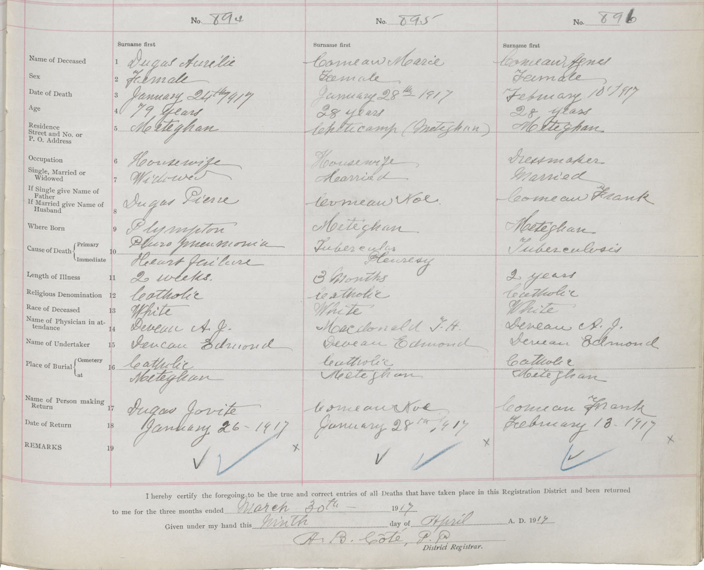 Female Death Registration: Year: 1917 book: 33 page: 343 number: 894