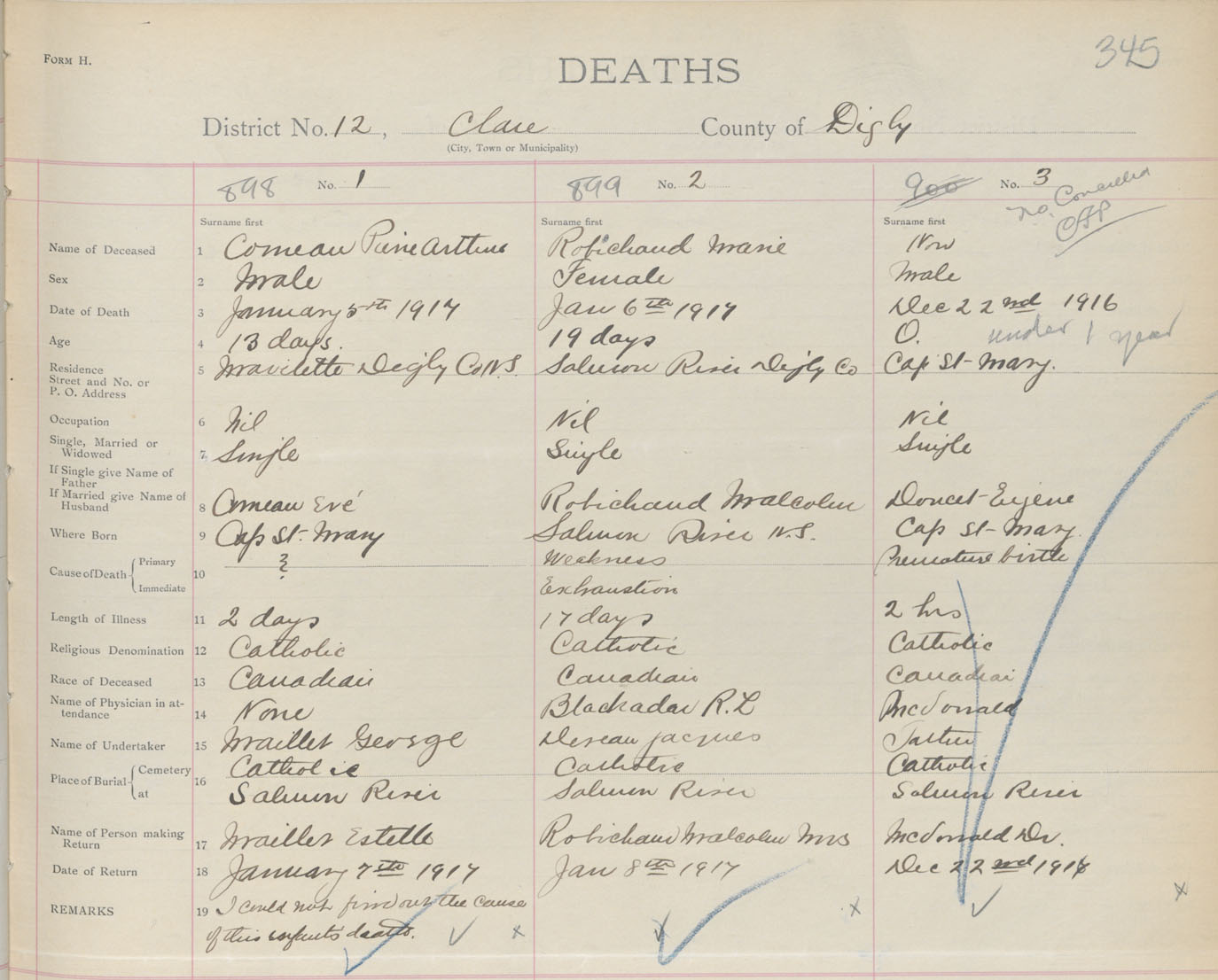 Male Death Registration: Year: 1917 book: 33 page: 345 number: 898