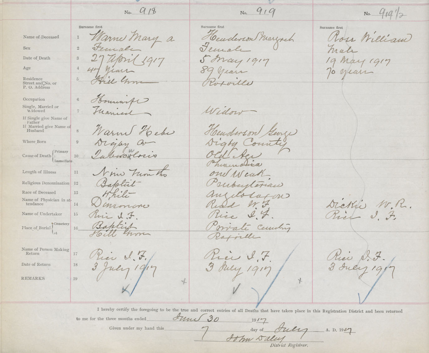 Female Death Registration: Year: 1917 book: 33 page: 350 number: 918