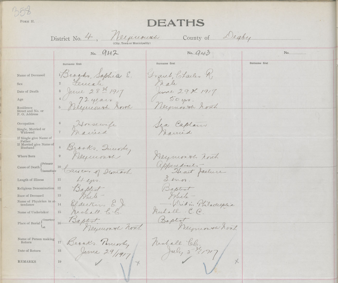 Female Death Registration: Year: 1917 book: 33 page: 358 number: 942