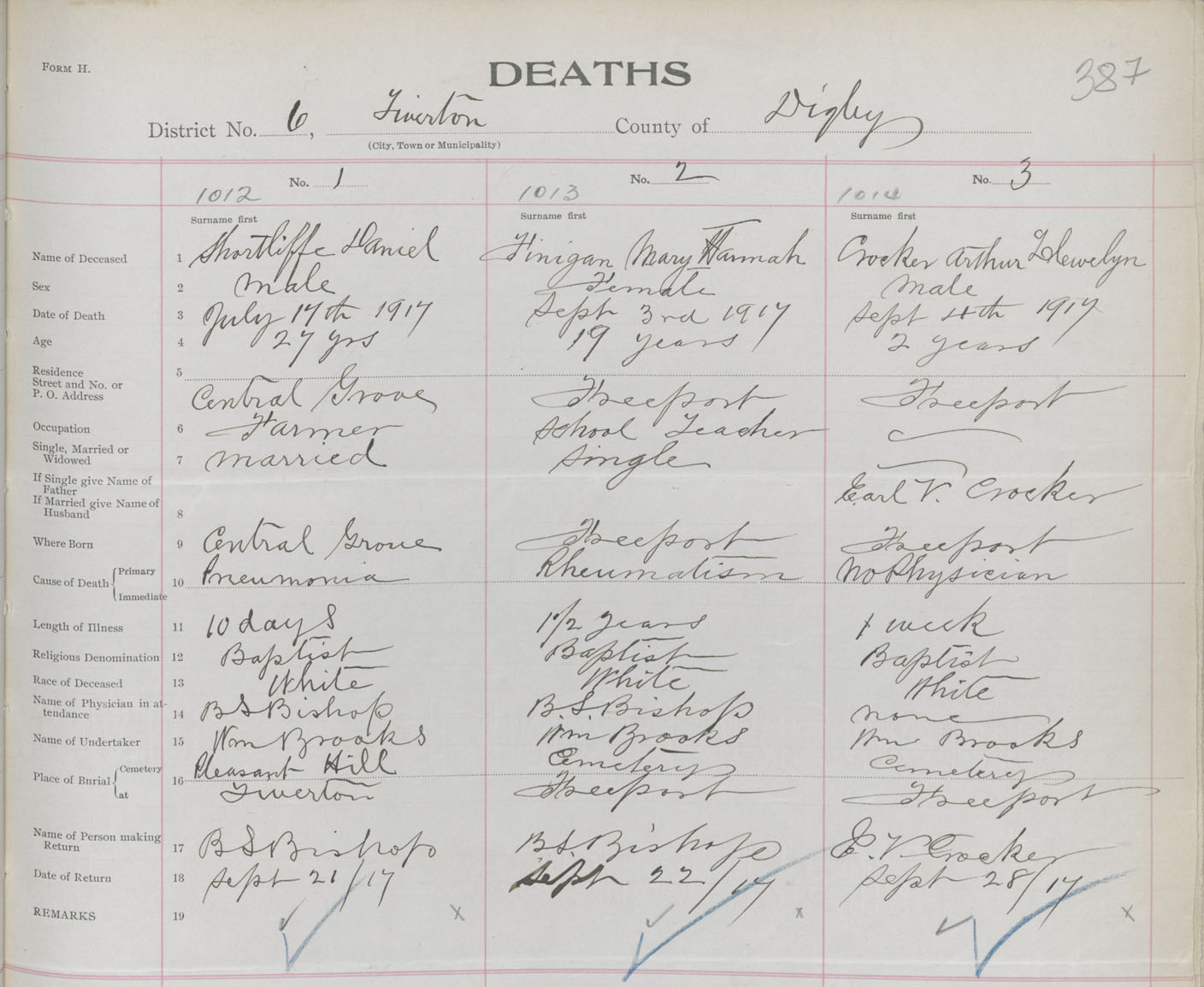 Male Death Registration: Year: 1917 book: 33 page: 387 number: 1012