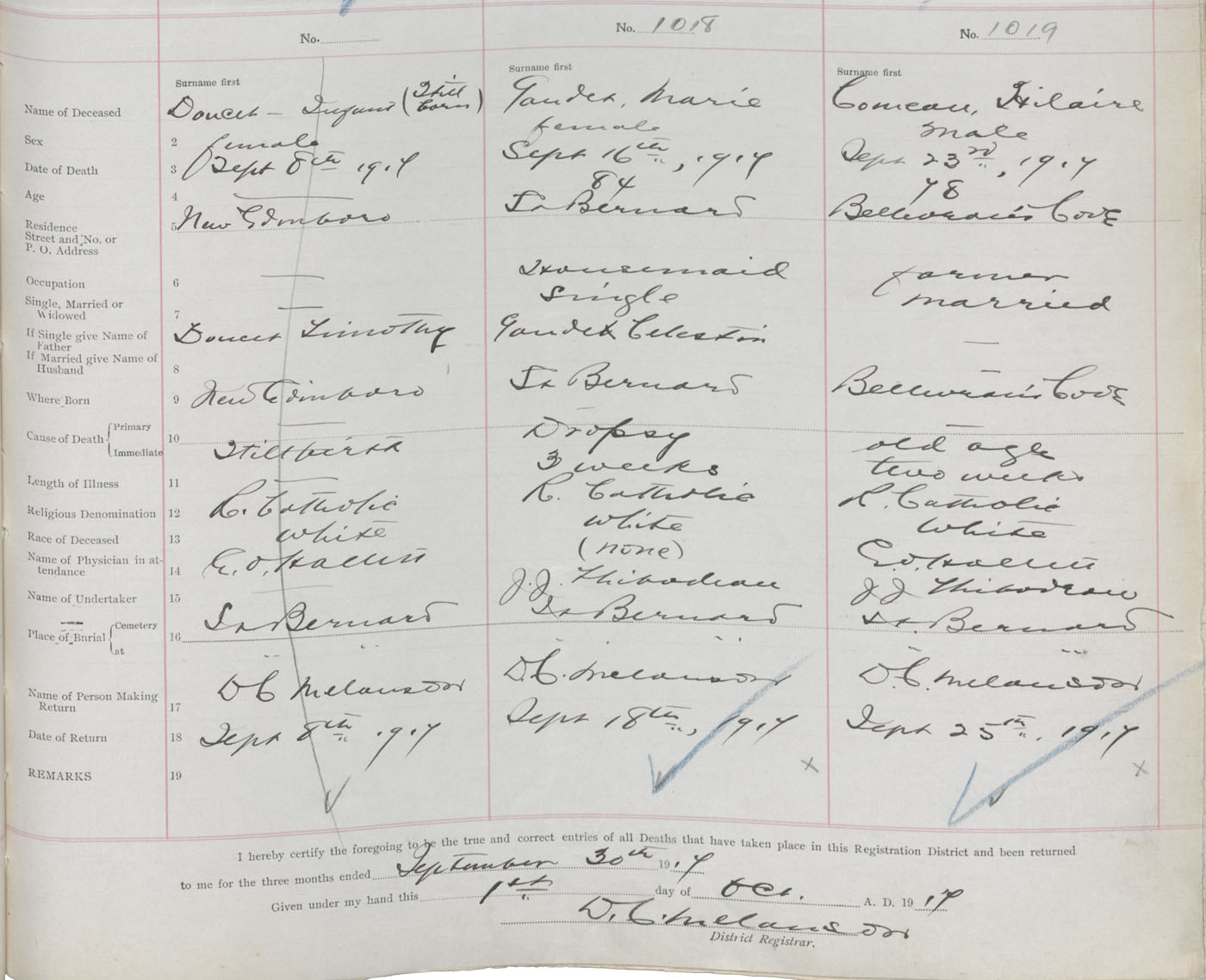 Female Death Registration: Year: 1917 book: 33 page: 391 number: 1018