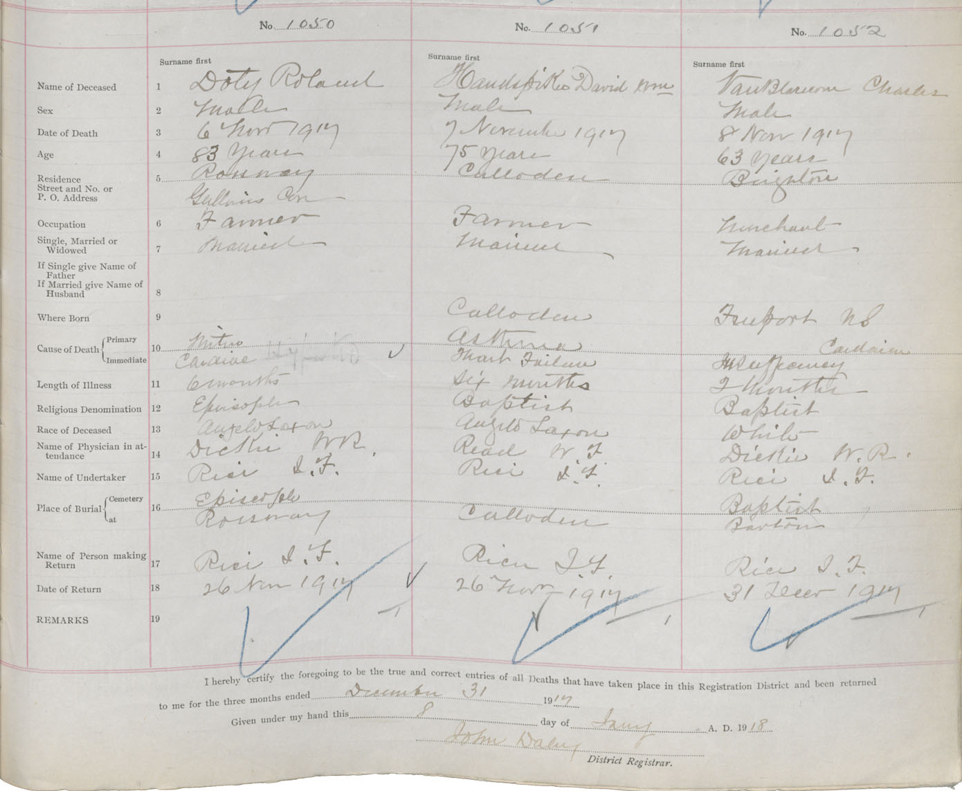 Male Death Registration: Year: 1917 book: 33 page: 403 number: 1050