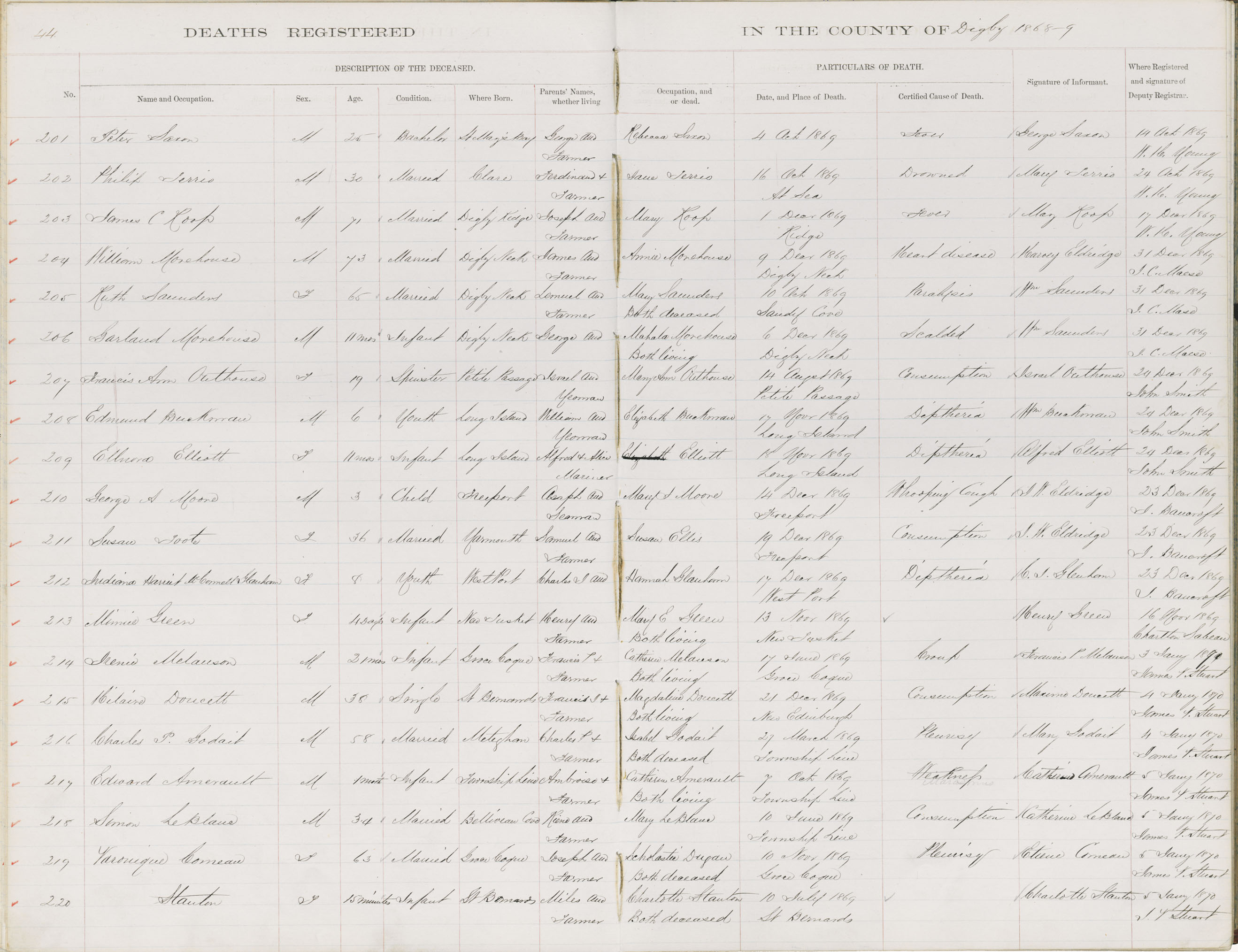 Death Registration: Year: 1869 book: 1806 page: 44 number: 204