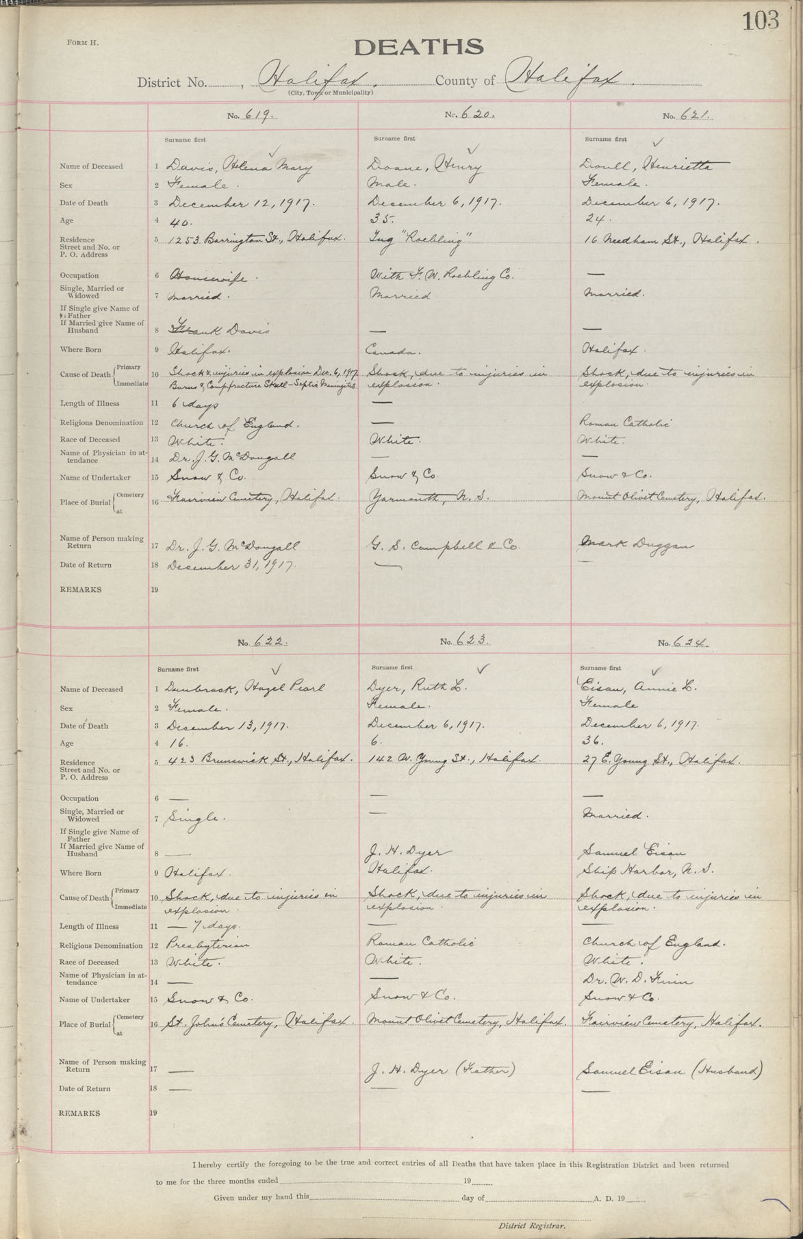 Female Death Registration: Year: 1917 book: 1917 page: 103 number: 624