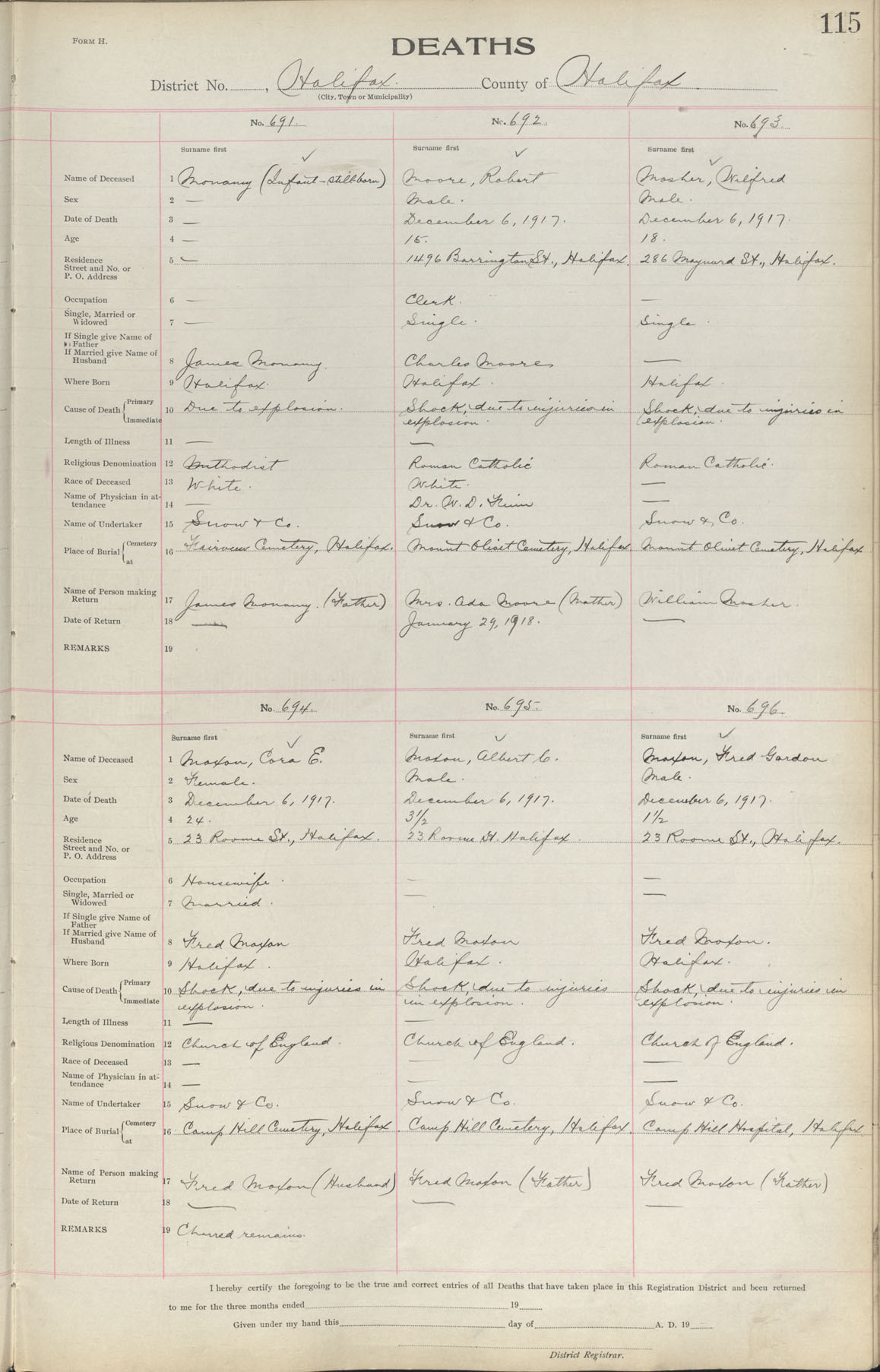 Male Death Registration: Year: 1917 book: 1917 page: 115 number: 696