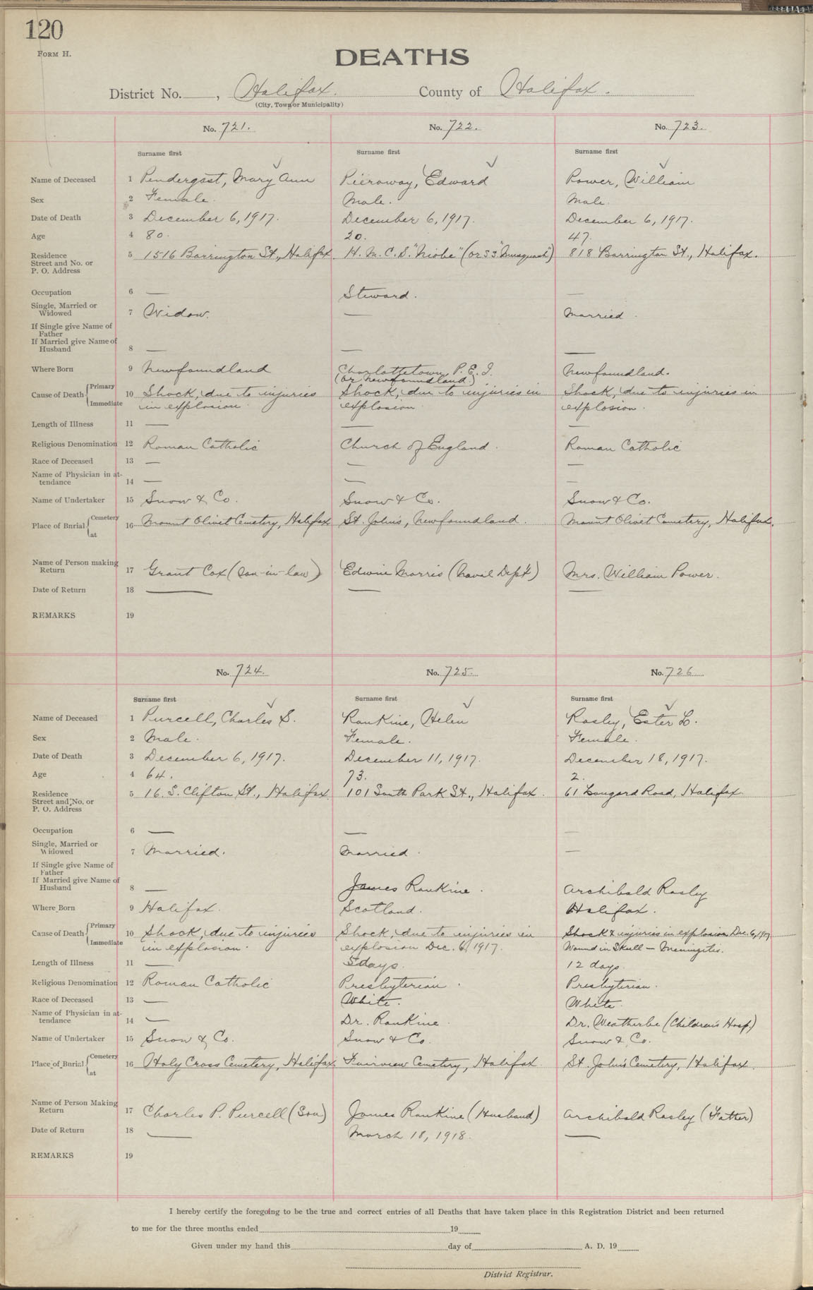 Female Death Registration: Year: 1917 book: 1917 page: 120 number: 726