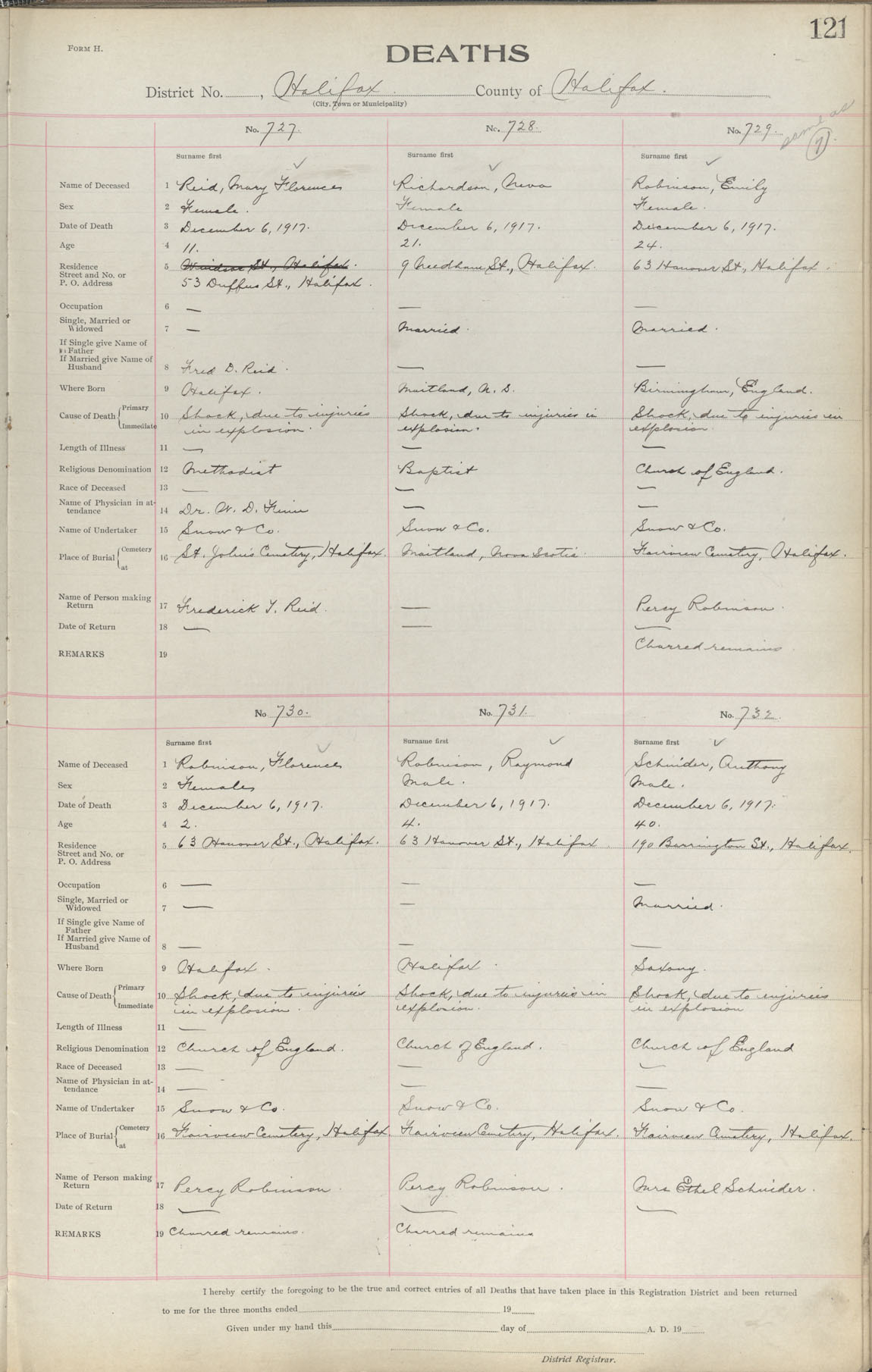 Male Death Registration: Year: 1917 book: 1917 page: 121 number: 732