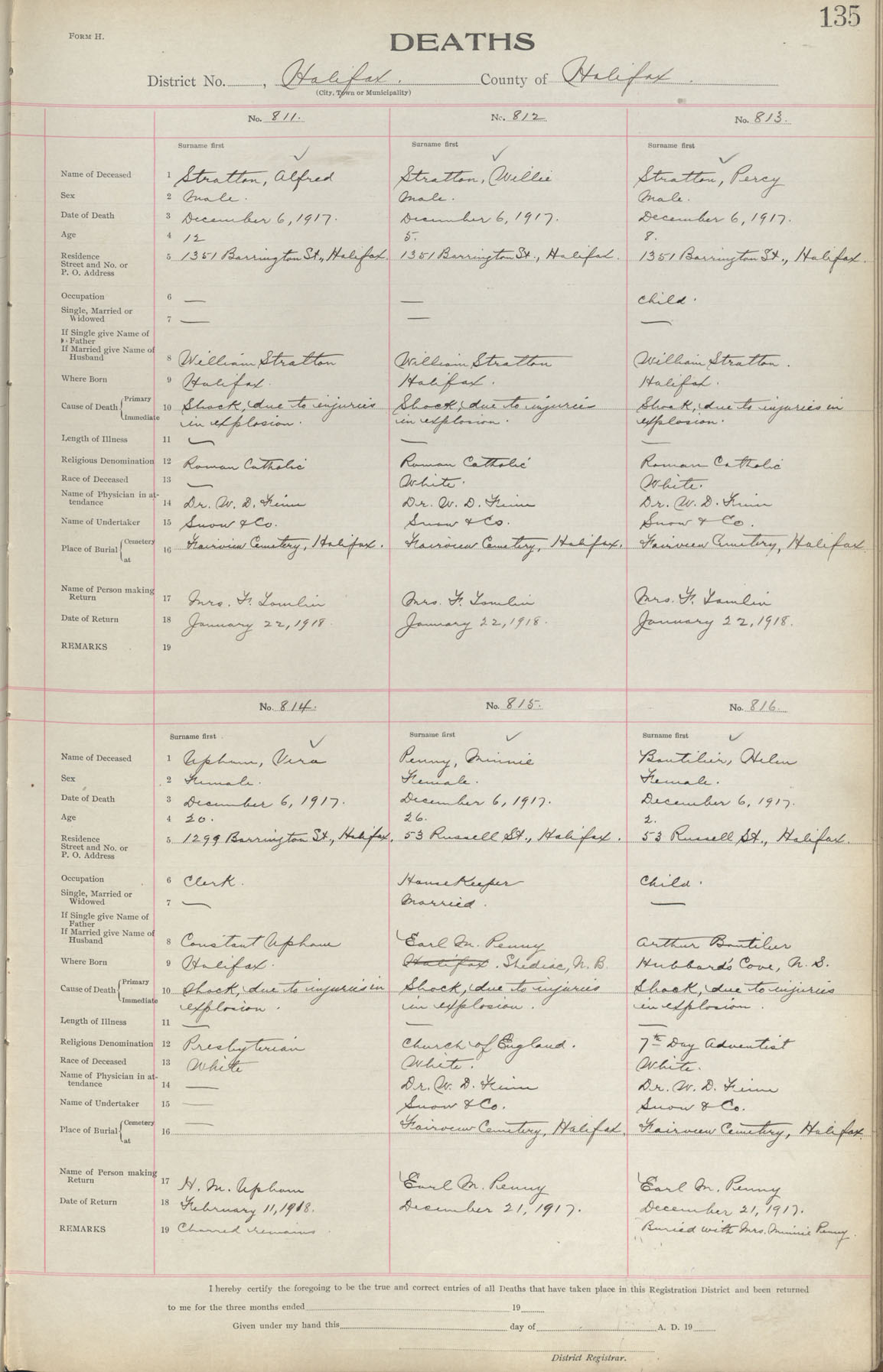 Female Death Registration: Year: 1917 book: 1917 page: 135 number: 816