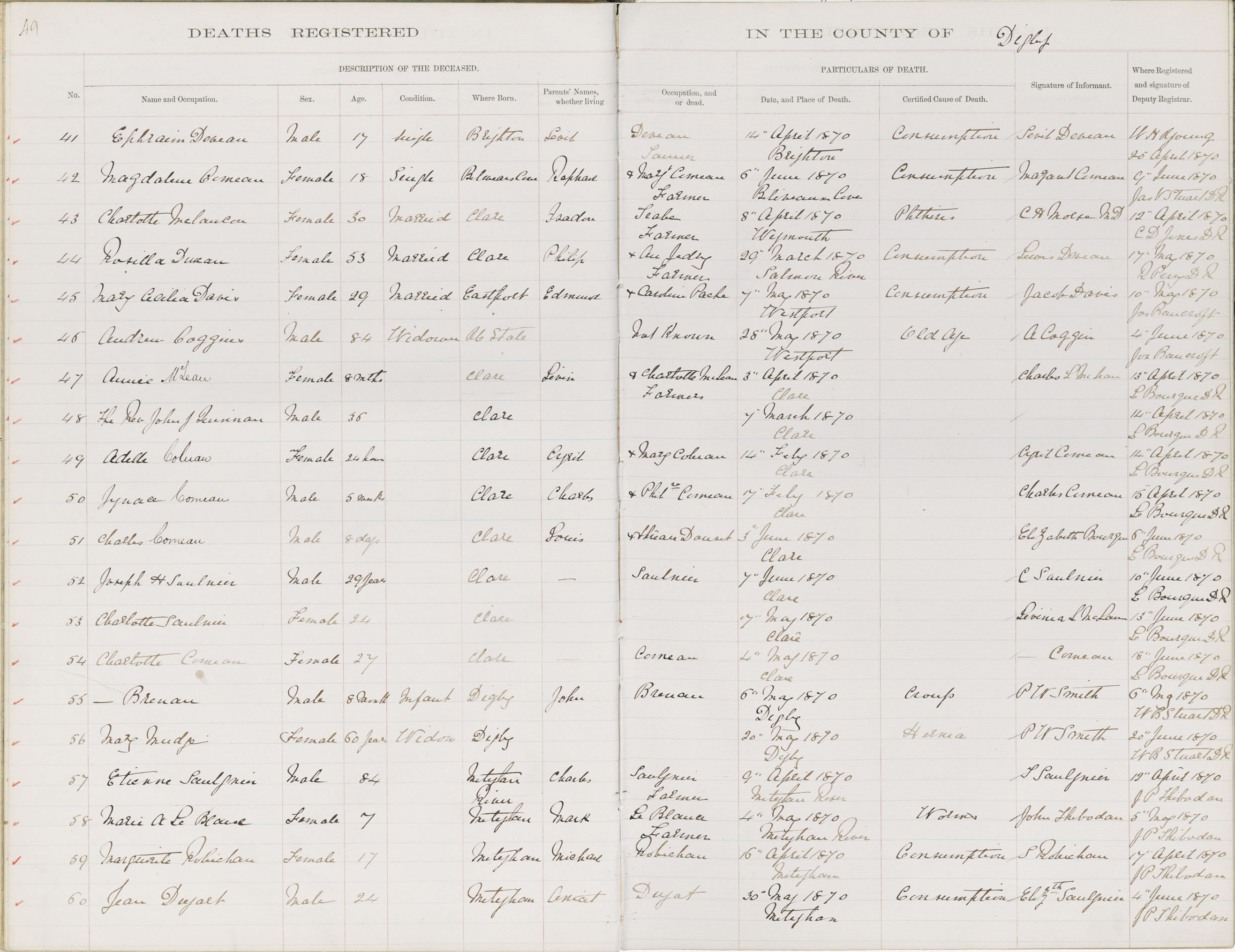 Death Registration: Year: 1870 book: 1806 page: 49 number: 60