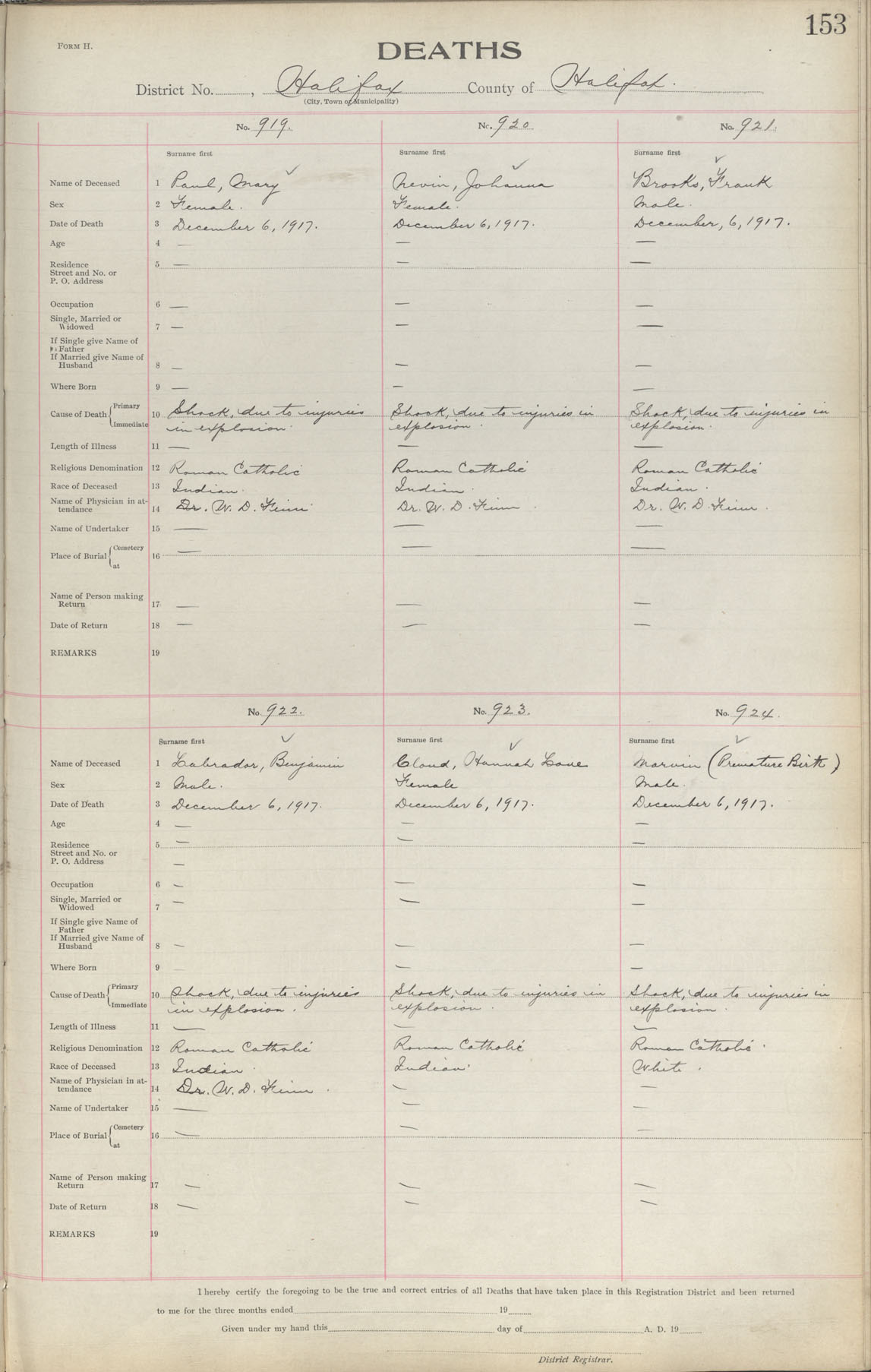 Female Death Registration: Year: 1917 book: 1917 page: 153 number: 919