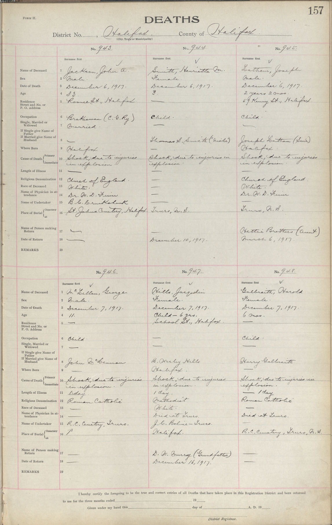 Male Death Registration: Year: 1917 book: 1917 page: 157 number: 943
