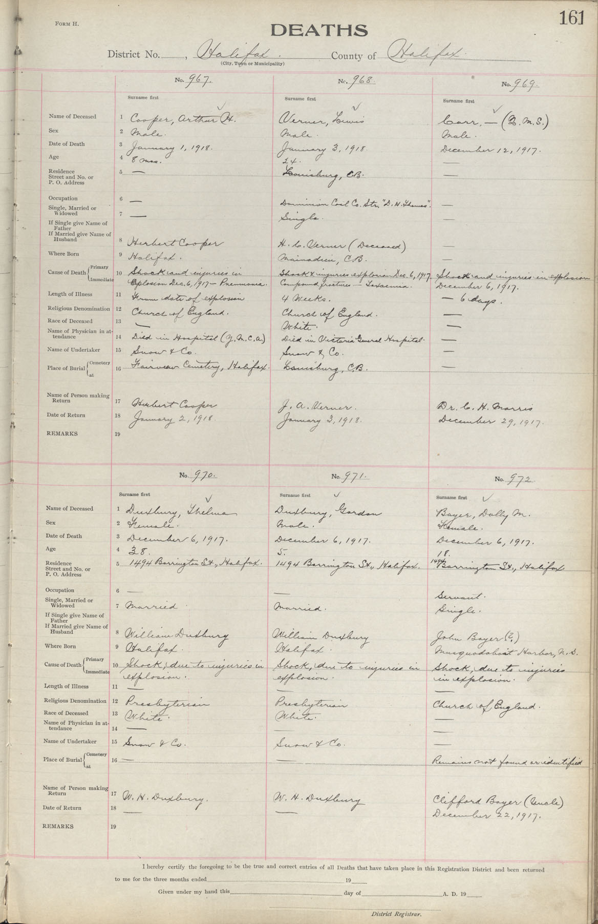 Male Death Registration: Year: 1917 book: 1917 page: 161 number: 967