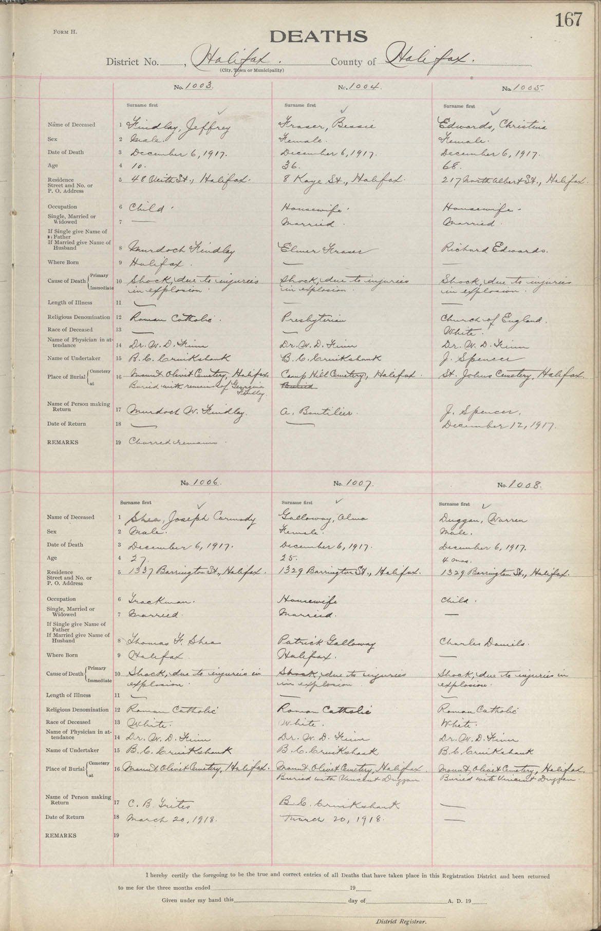Male Death Registration: Year: 1917 book: 1917 page: 167 number: 1003