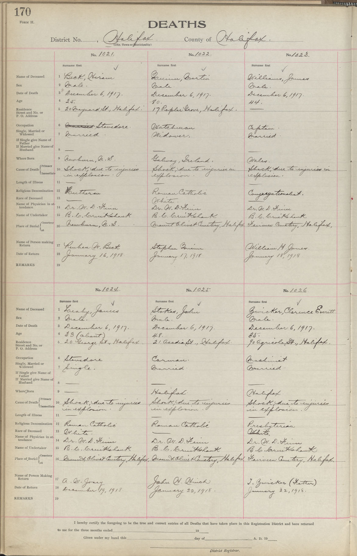 Male Death Registration: Year: 1917 book: 1917 page: 170 number: 1021
