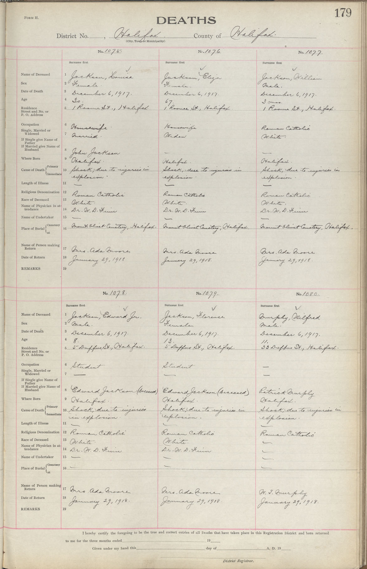 Female Death Registration: Year: 1917 book: 1917 page: 179 number: 1075
