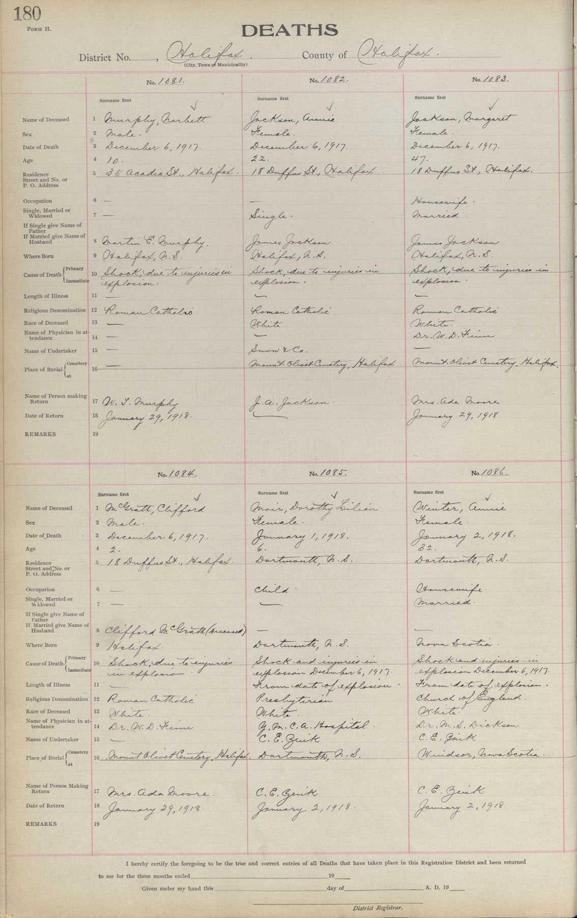 Male Death Registration: Year: 1917 book: 1917 page: 180 number: 1081
