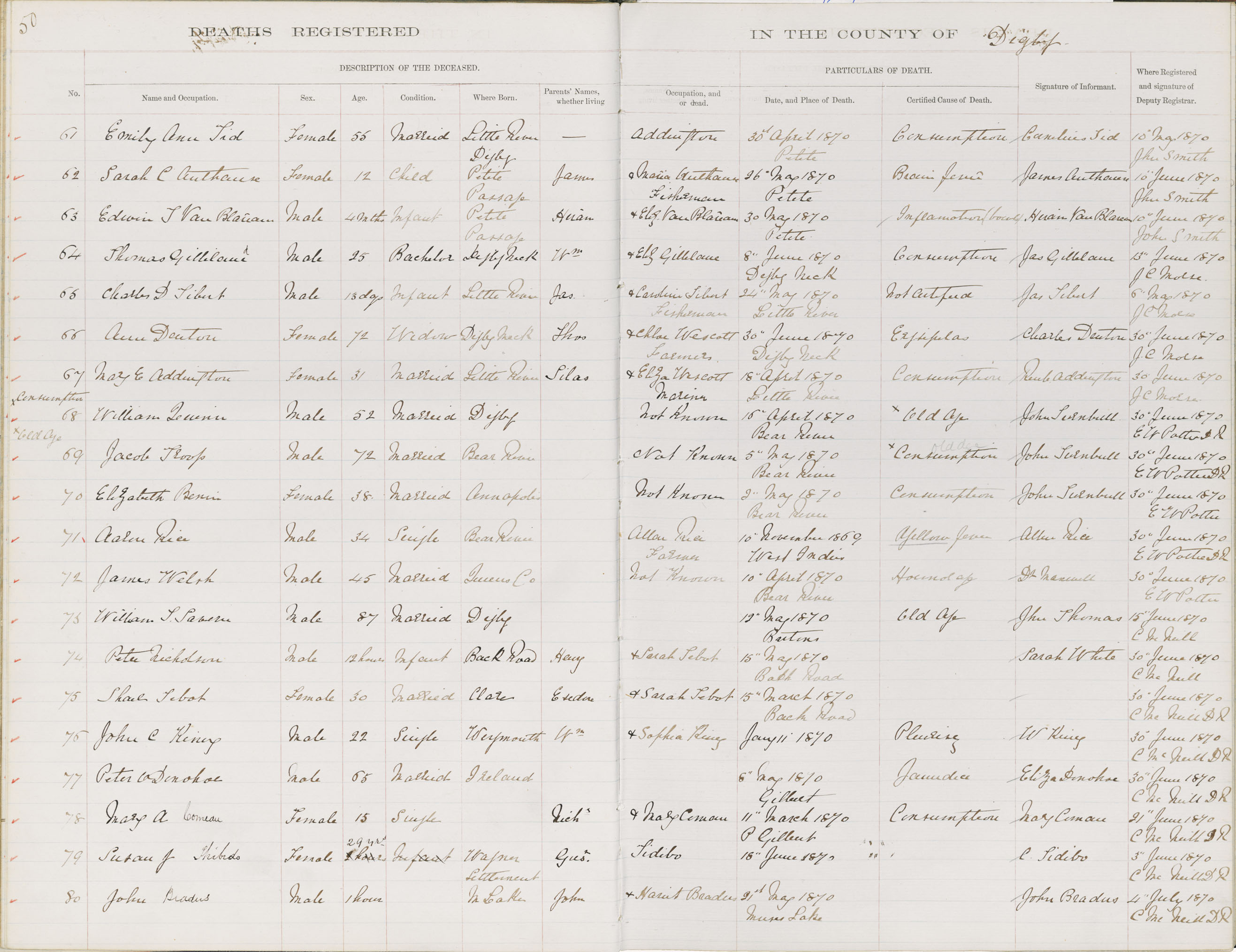 Death Registration: Year: 1870 book: 1806 page: 50 number: 80