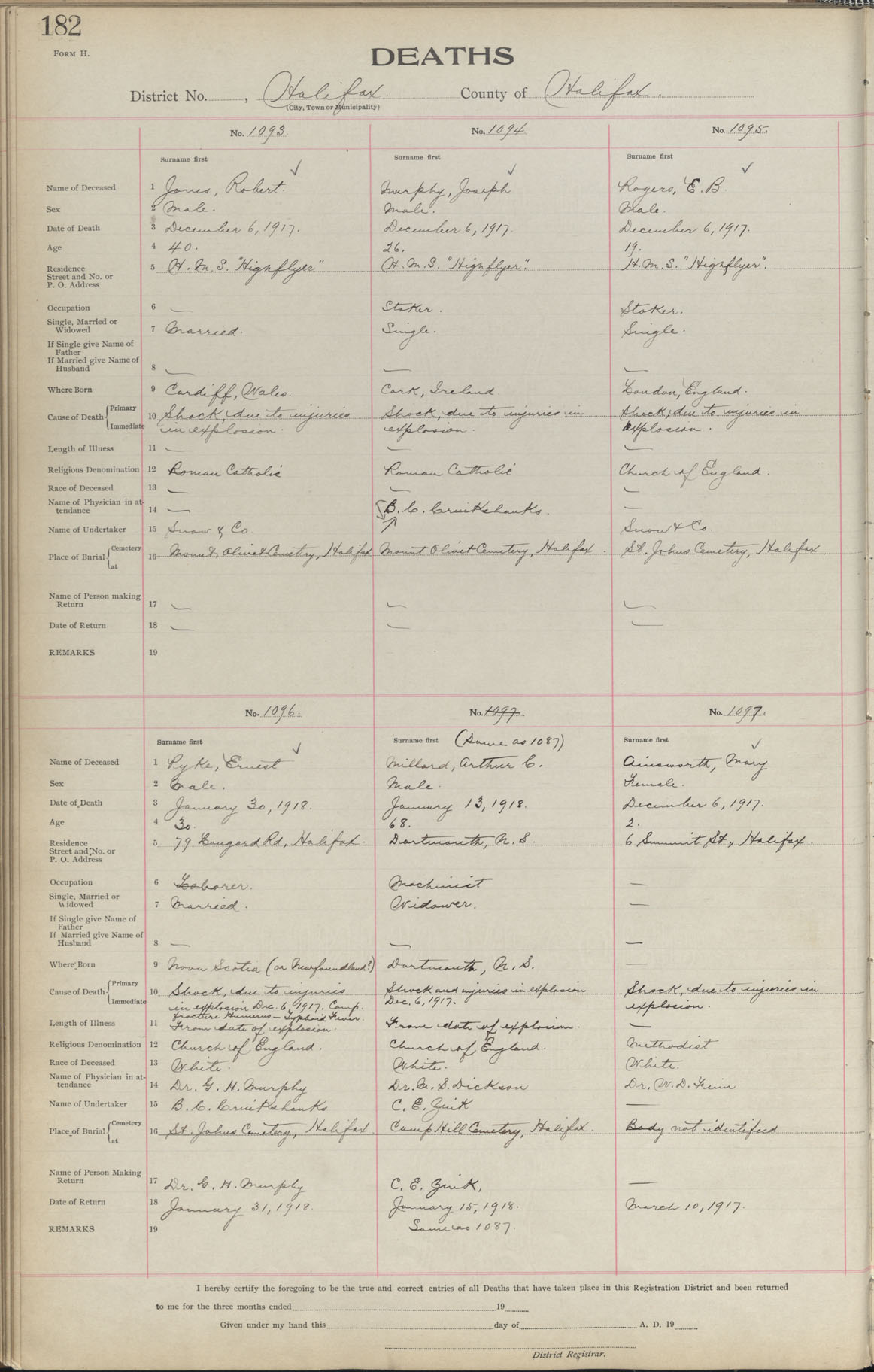 Male Death Registration: Year: 1917 book: 1917 page: 182 number: 1093