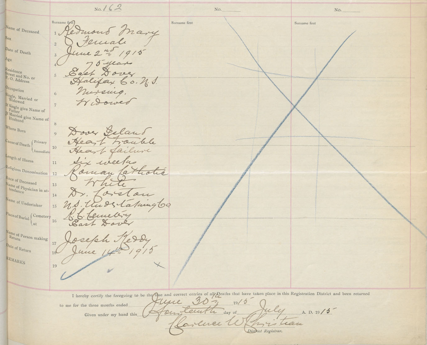 Female Death Registration: Year: 1915 book: 34 page: 47 number: 162