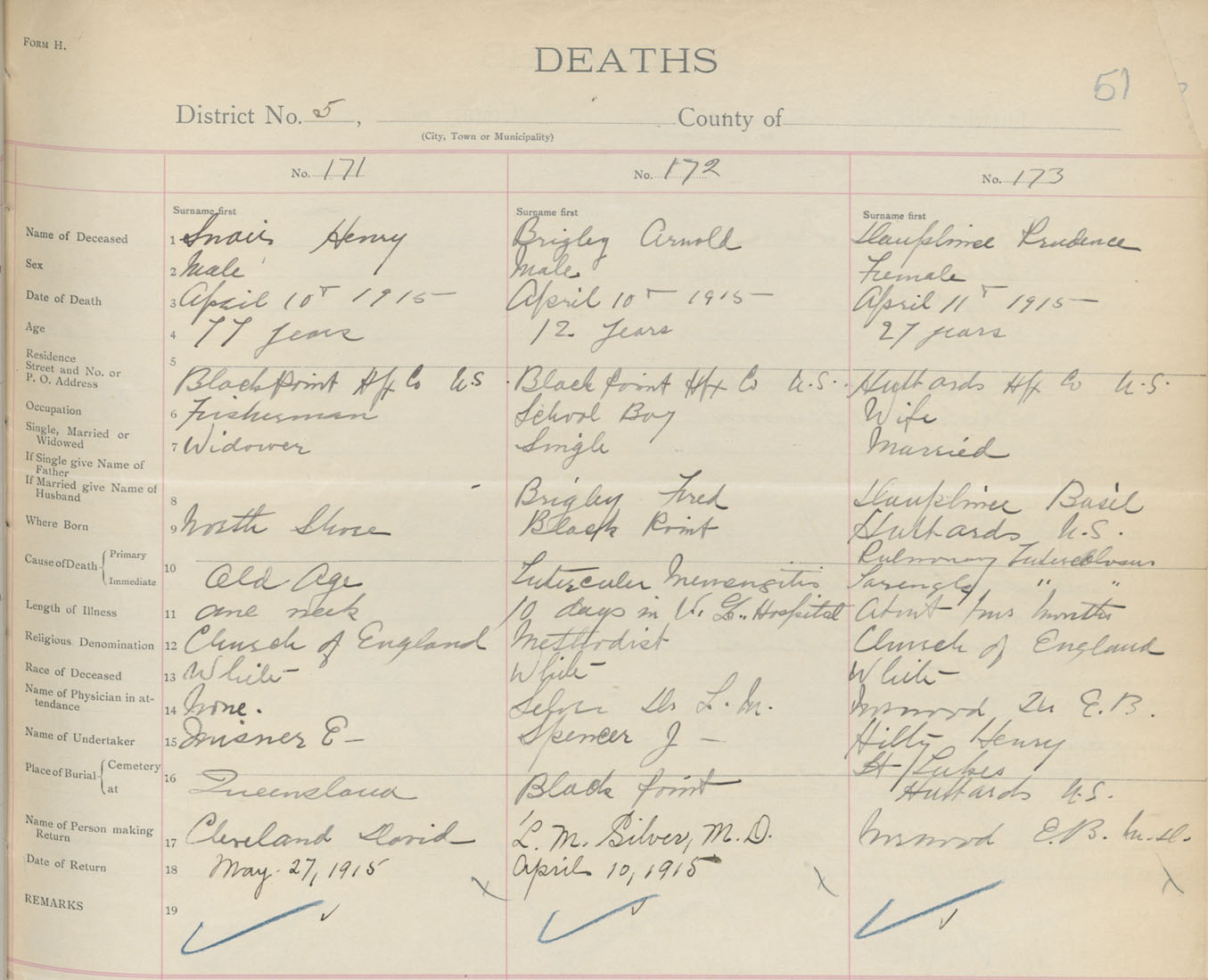 Female Death Registration: Year: 1915 book: 34 page: 51 number: 173