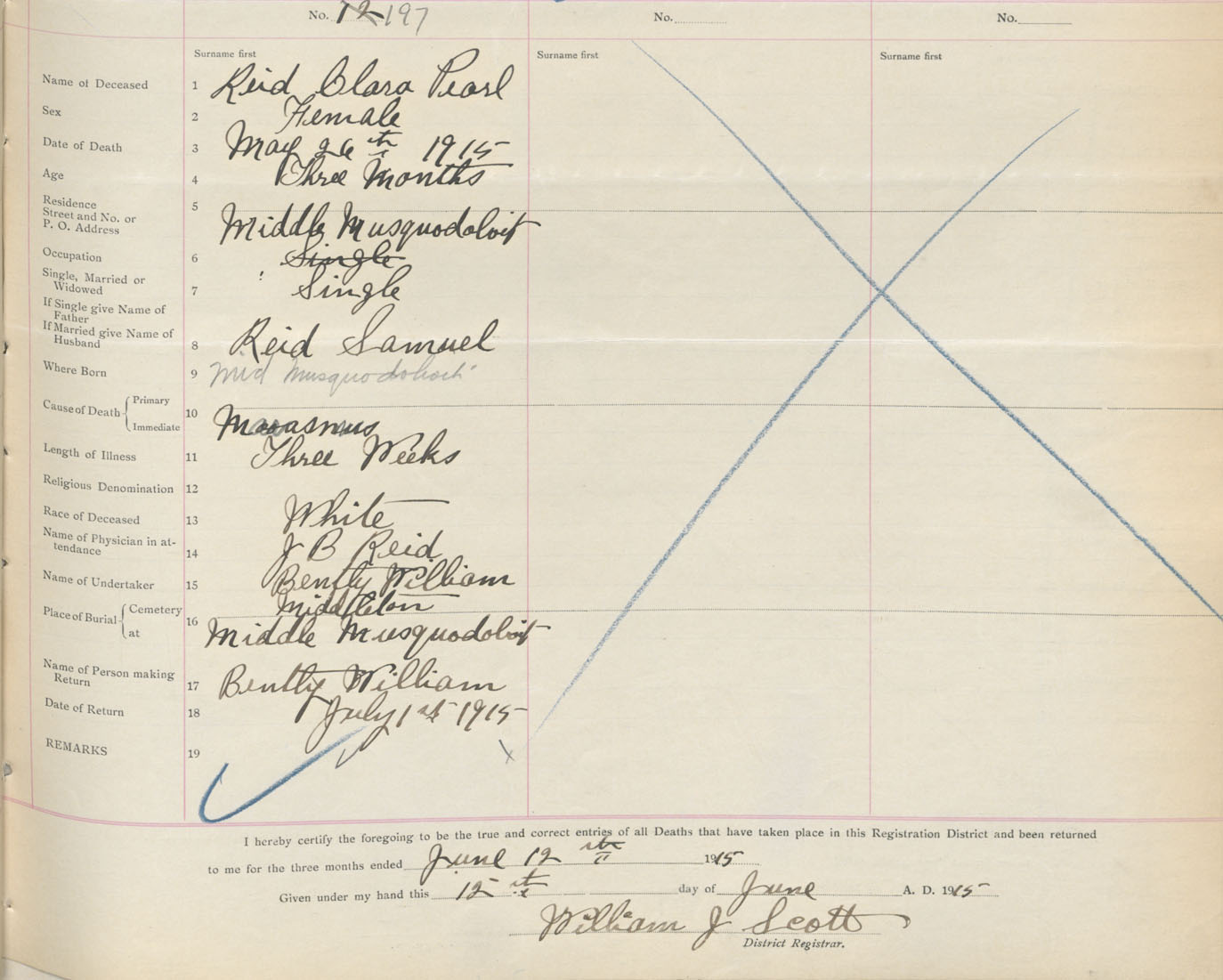 Female Death Registration: Year: 1915 book: 34 page: 59 number: 197