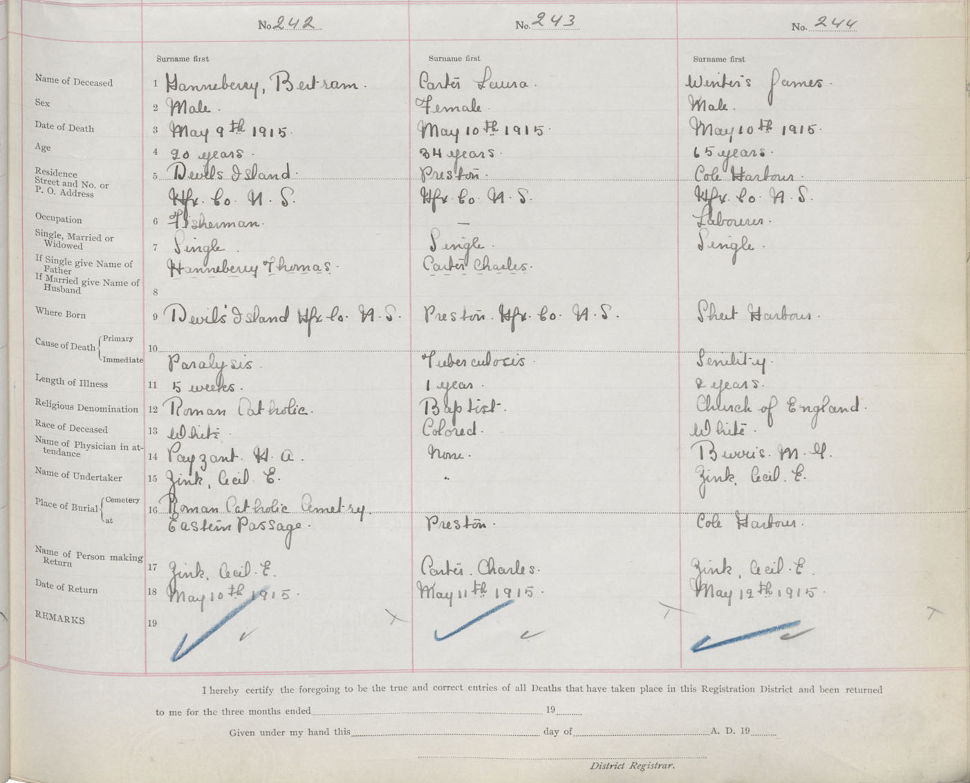 Male Death Registration: Year: 1915 book: 34 page: 71 number: 244