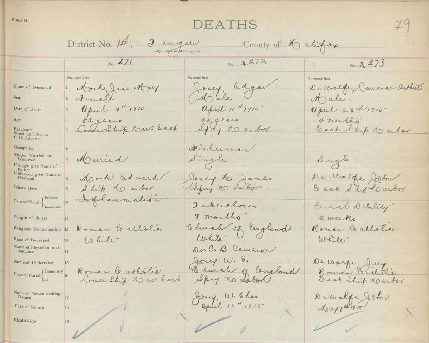 Male Death Registration: Year: 1915 book: 34 page: 79 number: 273