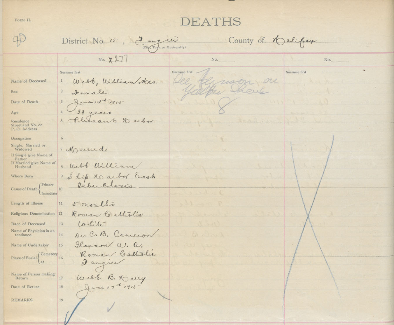 Female Death Registration: Year: 1915 book: 34 page: 80 number: 277
