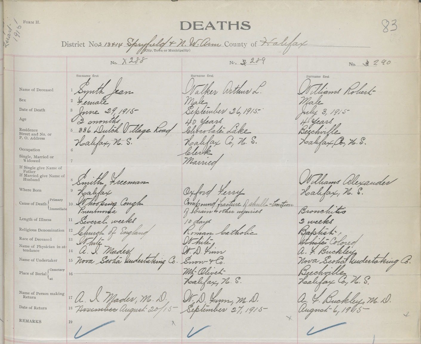 Male Death Registration: Year: 1915 book: 34 page: 83 number: 290