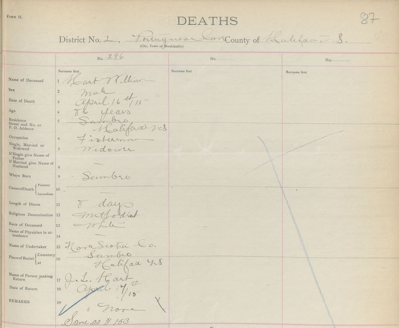Male Death Registration: Year: 1915 book: 34 page: 87 number: 296