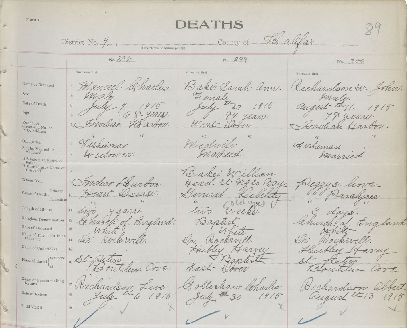 Male Death Registration: Year: 1915 book: 34 page: 89 number: 300