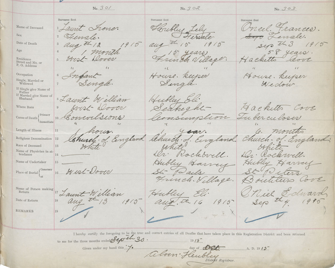 Female Death Registration: Year: 1915 book: 34 page: 89 number: 303