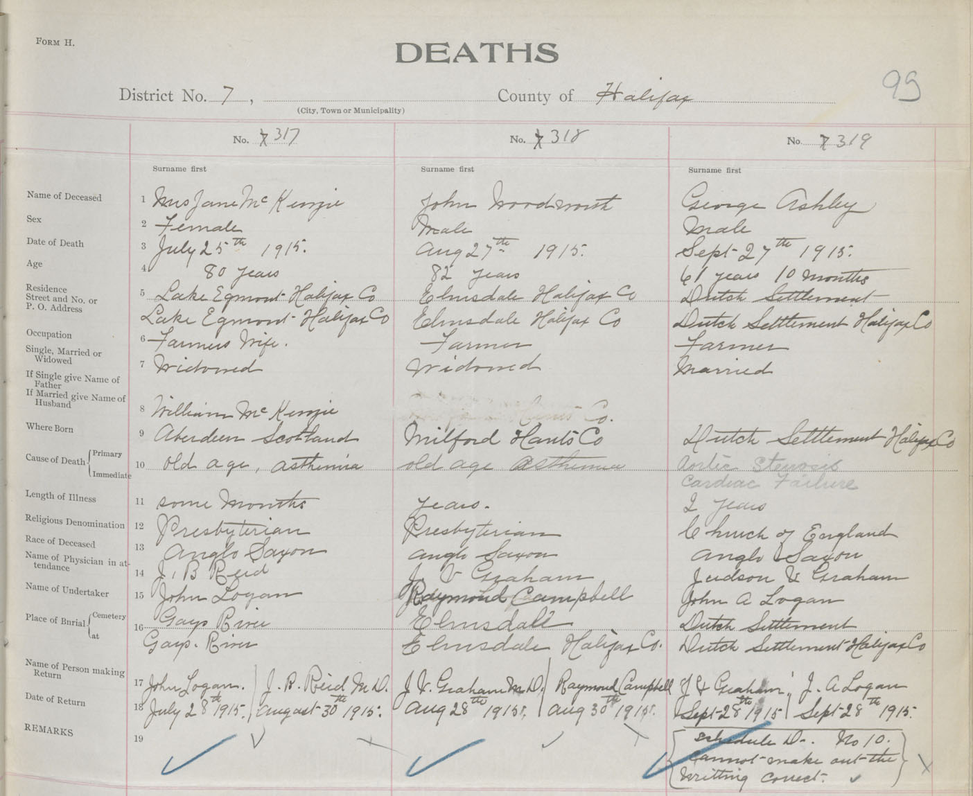 Male Death Registration: Year: 1915 book: 34 page: 95 number: 319