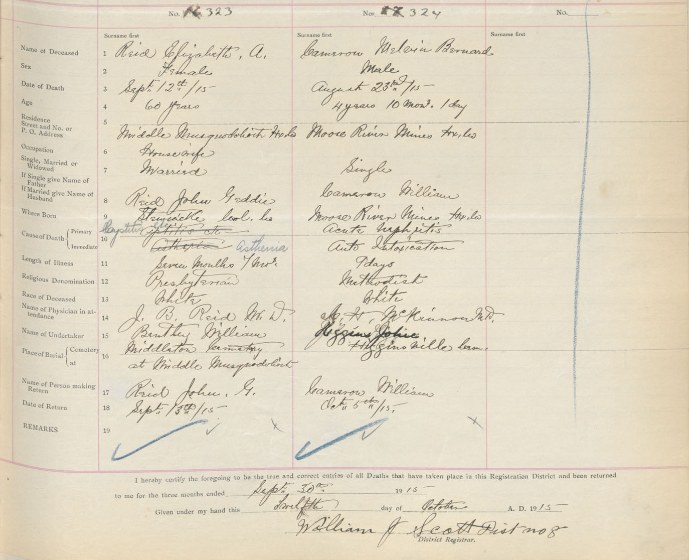 Male Death Registration: Year: 1915 book: 34 page: 97 number: 324