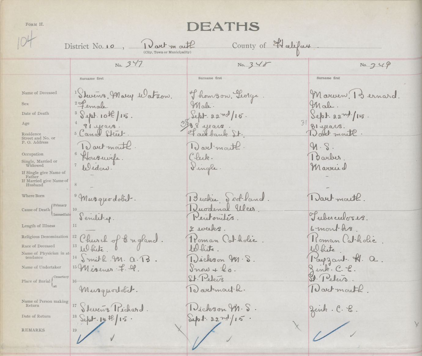 Male Death Registration: Year: 1915 book: 34 page: 104 number: 349