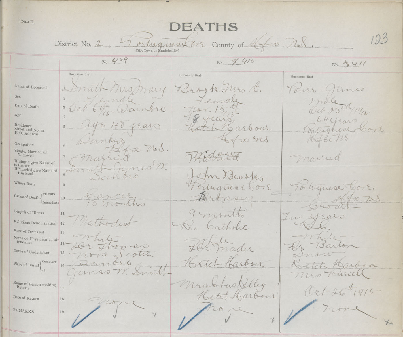 Male Death Registration: Year: 1915 book: 34 page: 123 number: 411