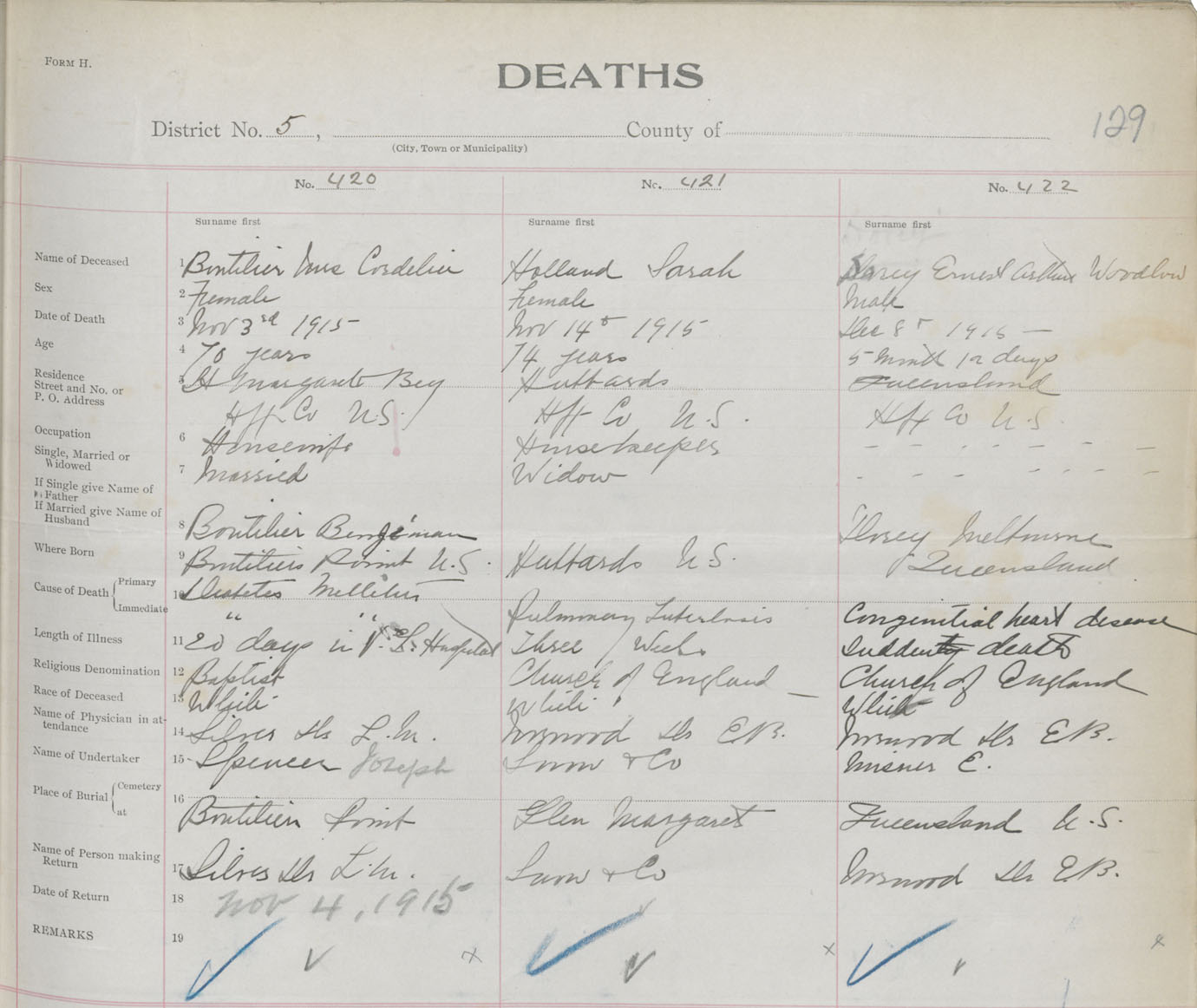 Male Death Registration: Year: 1915 book: 34 page: 129 number: 422