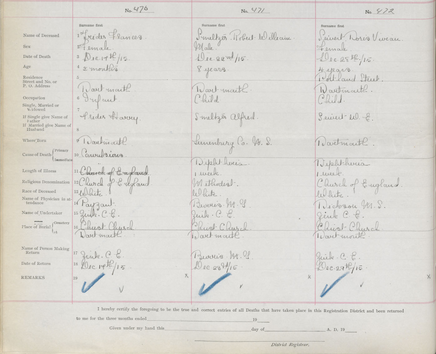 Female Death Registration: Year: 1915 book: 34 page: 144 number: 472