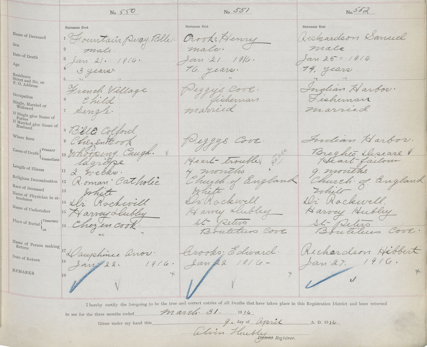 Male Death Registration: Year: 1916 book: 34 page: 169 number: 552