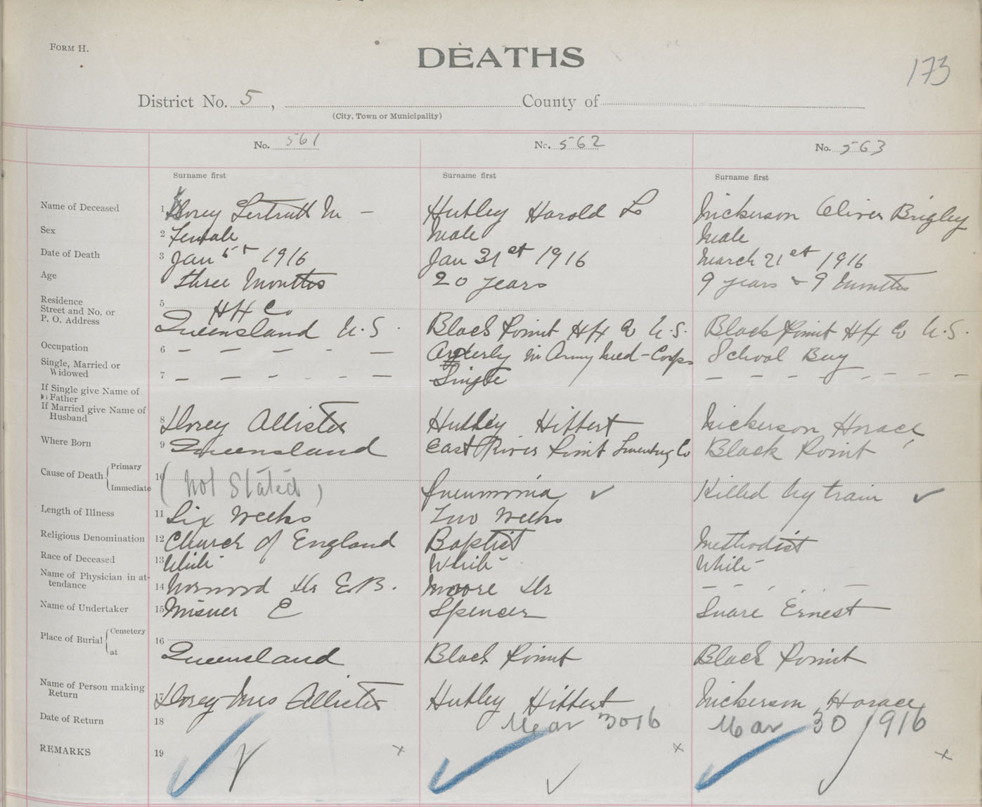 Male Death Registration: Year: 1916 book: 34 page: 173 number: 563